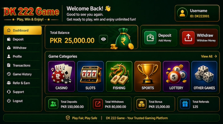 The DK 222 Game works in a step-by-step system that guides users from registration to gameplay and withdrawal. The process is designed to be simple, so even new users can understand it easily.